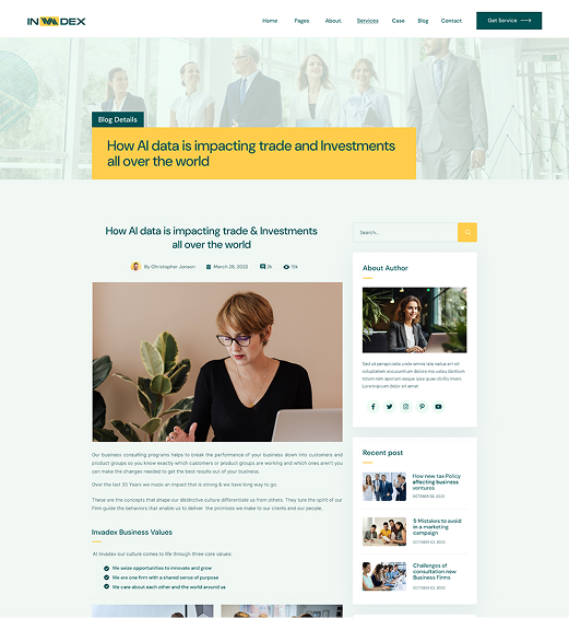 We are Invadex. It is designed as a modern & functional website for business & financial agencies.